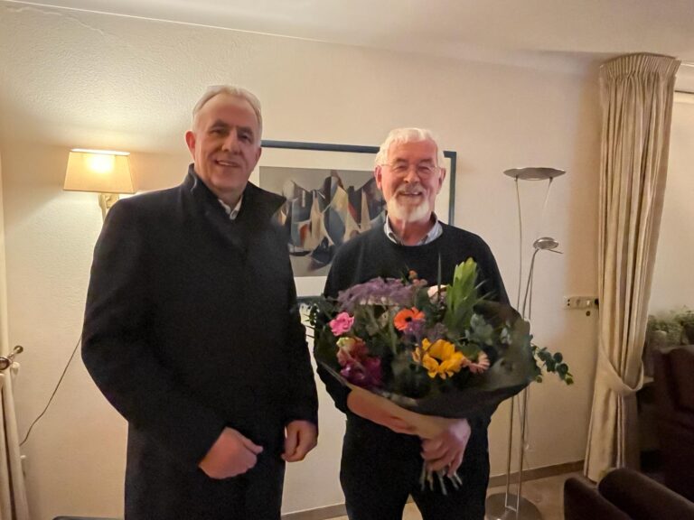 Ook Jan Boomkamp in Hengevelde werd met een bos bloemen verrast. Jan was jarenlang penningmeester van Amuzant, betrokken bij de sportdagen en nog steeds de drijvende kracht achter acties waarbij lege cartridges en batterijen worden ingezameld. Het levert geld op voor de basisschool en verschillende goede doelen.