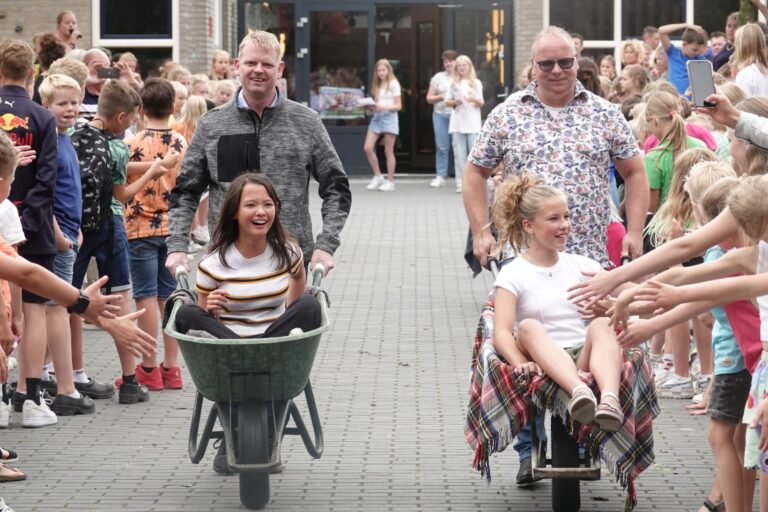 Het is een traditie en elk jaar is het een van de hoogtepunten op de Petrusschool, het uitkruien van de kinderen van groep 8. Na een week vol activiteiten was er in het bijzijn van vele belangstellen het traditionele uitkruien op de Petrusschool in Hengevelde. Pittig mocht het ‘uitkruien’ voor sommigen genoemd worden, met de bijna gebruikelijke lach en traan. Enkele leerlingen en leerkrachten hielden het namelijk niet droog op het moment elkaar voor het laatst de hand drukten. Klik HIER om het nog even na te lezen, want duizenden gingen je al voor.