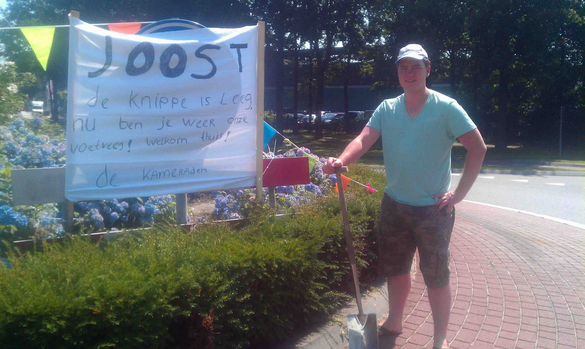 Joost de Witte is vandaag terug gekomen van zijn wereldreis die ruim 3 maand duurde. Hij was onder meer in Australie, Nieuw-Zeeland en Bali. Joost keerde vandaag terug op Nederlandse bodem. Zijn familie had een welkomsbord in de tuin geplaatst, zijn vrienden een bord op de rotonde in Hengevelde. Zusje Judith is nog op wereldreis, tijdens hun reis kwamen ze elkaar tegen en trokken ze enige tijd met elkaar op. (Zie foto onder.) Joost, welkom terug!