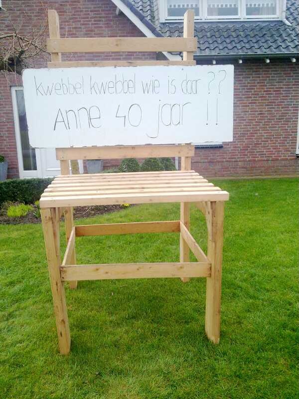 Ter gelegenheid van deze mijlpaal kreeg ze zoals op de foto te zien een grote stoel met bord van haar naasten.