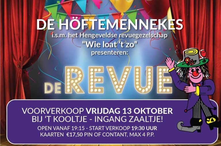 Achter de schermen is onze revuegroep ‘Wie loat ‘t zo’ weer druk bezig om een fantastische show in elkaar te draaien, waar we op 3 en 4 november als dorp weer lachend van mogen genieten.