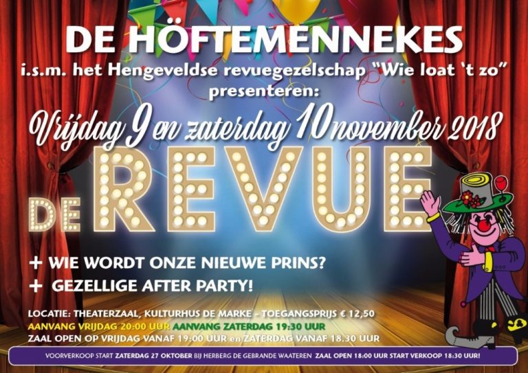 Kaartverkoop Revue 2018 op zaterdag 27 oktober bij Gebrande Waateren