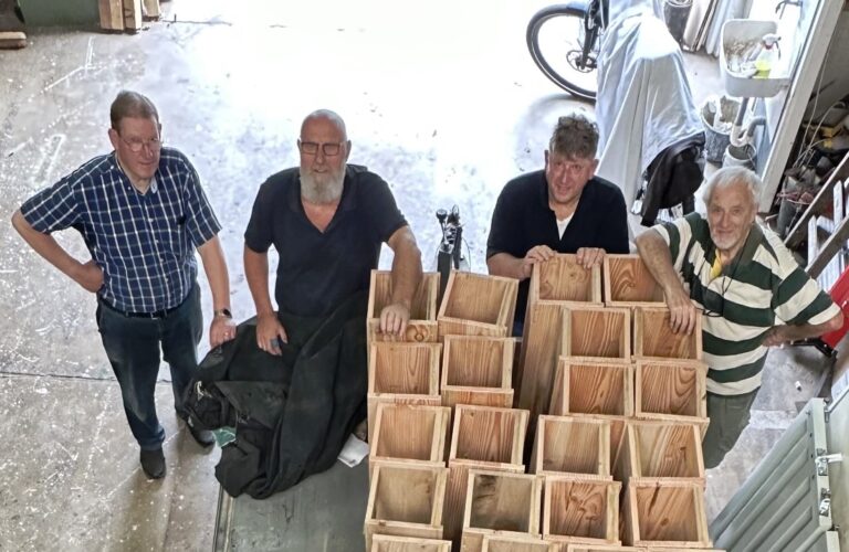 Onderhoud betekent dat de Kast’n Keals in de herfst druk zijn met het maken van de kasten in de werkplaats van Alfons Weernink aan de sluisstraat in Delden. Dit jaar alleen al 30 steenuilenkasten, 8 bosuilenkasten, 24 spreeuwenkasten en enkele torenvalkkasten.