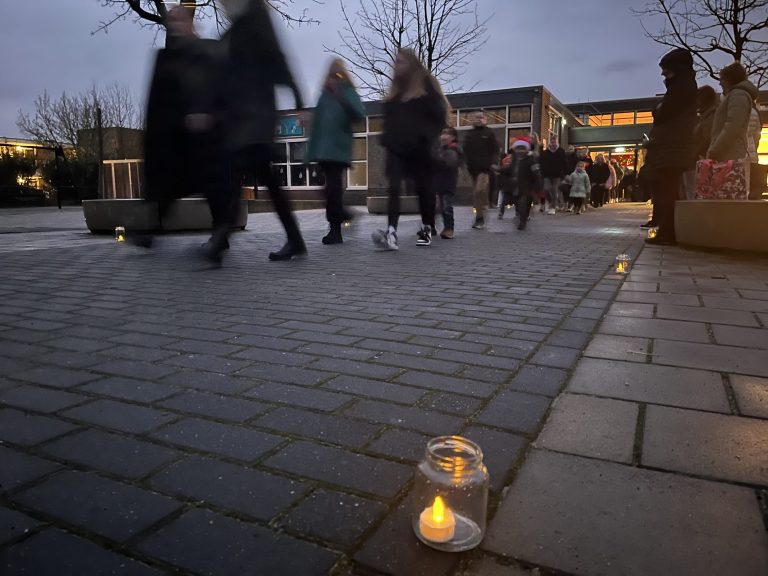 Vooral voor groep 3 was het speciaal, zij mochten in een voorstelling het kerstverhaal uitbeelden. De andere klassen van de Petrusschool gingen in colonne langs de verlichte route van de school richting de kerk. Ook werden er diverse liederen gezongen vanuit de goed gevulde kerkbanken.