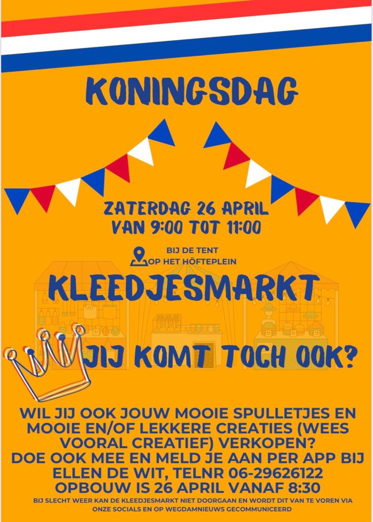 Ook dit jaar wordt de Kleedjesmarkt weer georganiseerd door Culturele Werkgroep de Markering. Traditioneel op Koningsdag. Let op, Koningsdag is dit jaar op zaterdag 26 april.