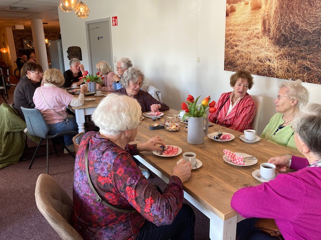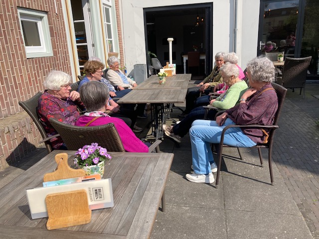 Aan het einde werd er buiten, in het zonnetje en onder het genot van een drankje, nog even nagepraat. Het was een gezellige middag en iedereen ging tevreden naar huis.