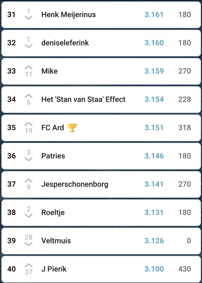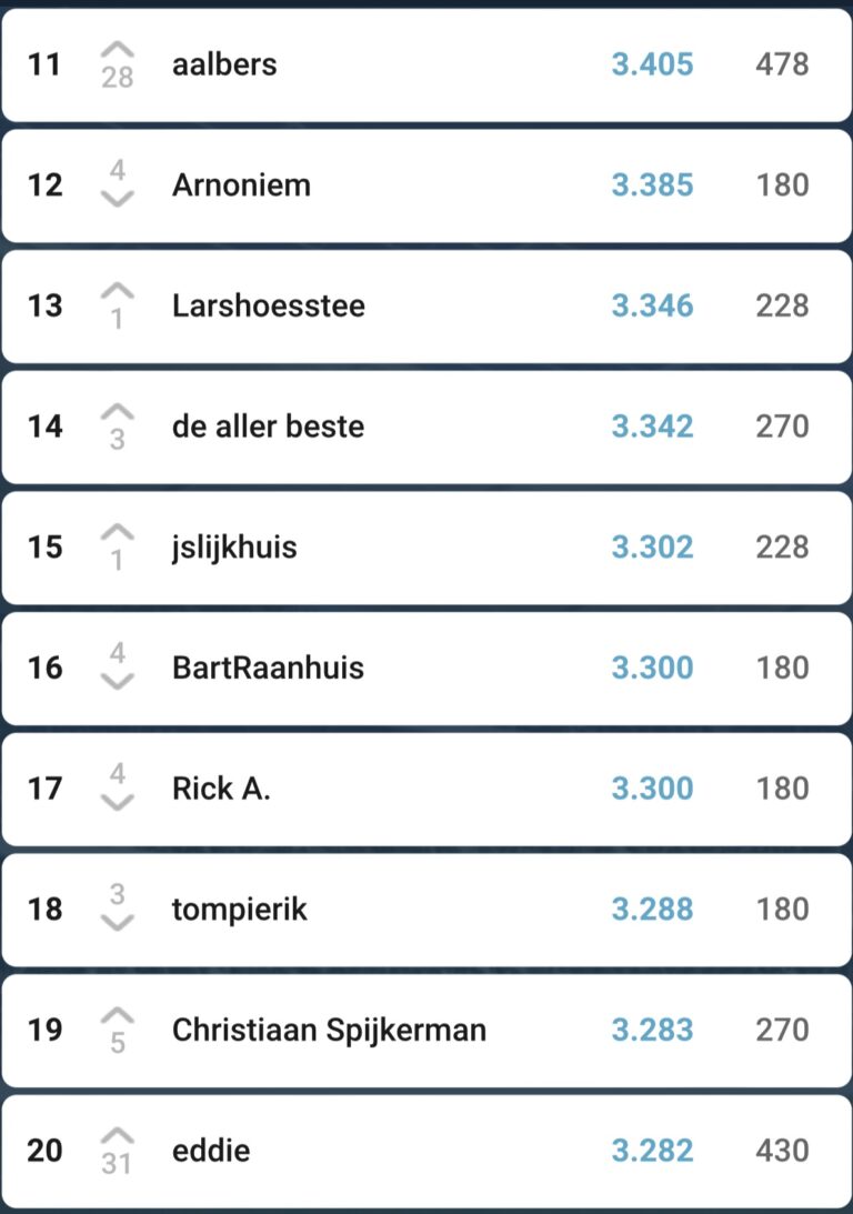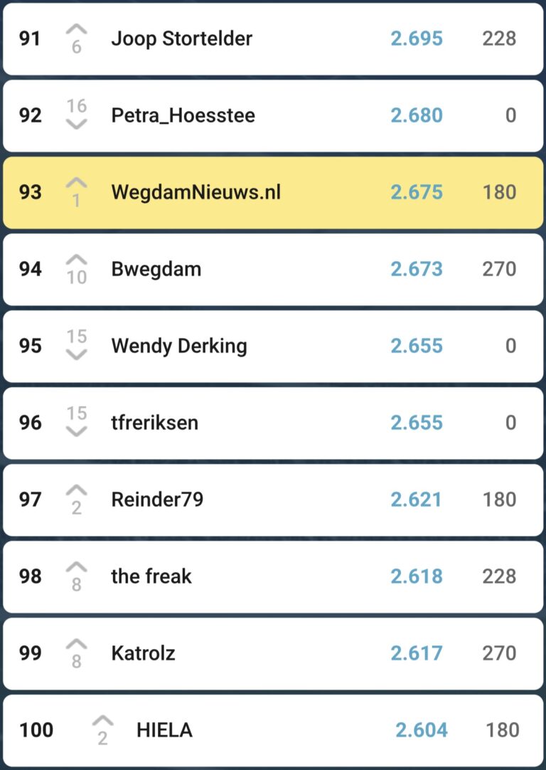 Op de laatste speeldag sloeg Luc Eijsink toe en de Wegdamnieuws EK Poule! Waar op de voorlaatste dag Arjan Wegereef op de overwinning leek af te stevenen, was het Luc die aan het langste eind trok. Arjan moest daarnaast ook nog eens Robin Raanhuis, de winnaar van afgelopen jaar van de Tourpoule en de Wegdamnieuws eredivisie aan zich voorbij laten gaan.