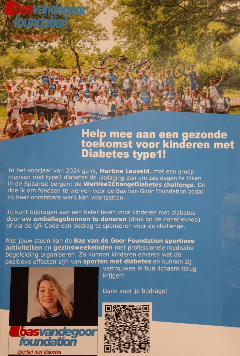 “Voor dit mooie doel zet ik mij deze lente weer in. Door samen met andere mensen met diabetes type 1 (ja, ook ik heb het op 12-jarige leeftijd gekregen) te gaan hiken in Spanje zamelen we geld in om ook volgend jaar de kinderen weer de mooie leerzame activiteiten aan te kunnen bieden. Help jij me mee? Doneer je statiegeld bij de Coop Hengevelde! Coop Hengevelde gaat het bedrag verdubbelen, hoe gaaf is dat!