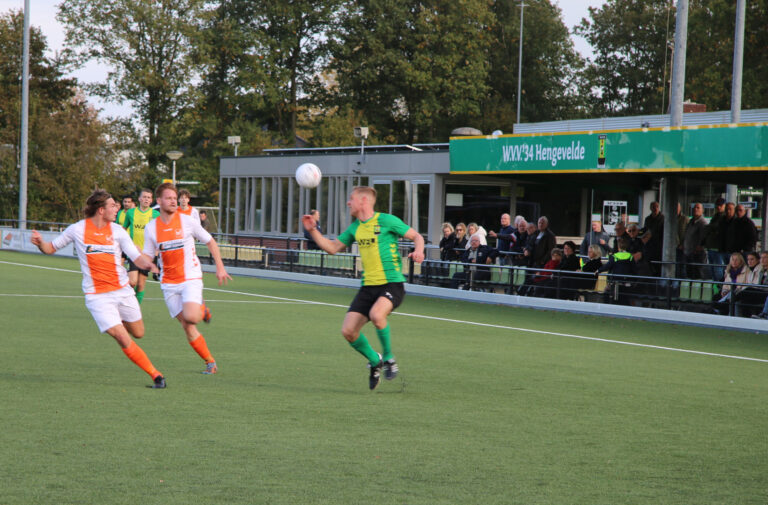 WVV’34 heeft zichzelf vandaag een goede dienst bewezen in de strijd om de bovenste plekken. Het won met 3-2 van Lemelerveld, nadat het bij rust nog tegen een totaal onnodige 2-1 nederlaag aankeek. Onnodig, aangezien de Hengeveldenaren zeer goed uit de startblokken kwamen. De gasten werden vanaf het begin onder druk gezet en diverse kansen volgden voor onder meer Mahmoud Jaafil en Lars Aarnink. Het euvel wat al vaker kwam bovendrijven in de laatste wedstrijden was ook vandaag weer een puntje van aandacht, scoren. Dit gebeurde dan toch na een kwartier spelen. Lars Aarnink kon na een goede actie de 1-0 eenvoudig binnenwerken. Kat in het bakkie, zo leek het. Echter gebeurde vlak daarna tot tweemaal toe hetzelfde, simpel verdedigen en alerte spitsen zorgden voor de 1-1 en 1-2.
