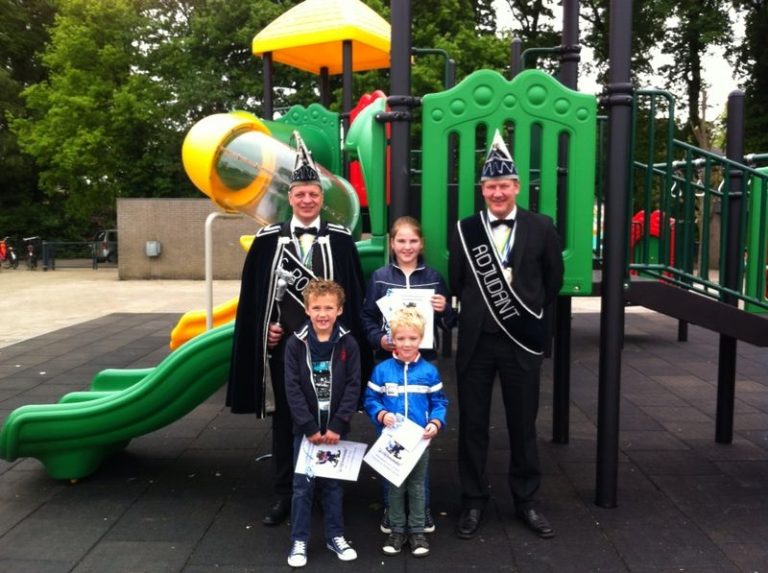 Gisterenochtend heeft Prins Rob II samen met zijn adjudant Gerritjan de prijsuitreiking van de ballonwedstrijd gedaan. Op een vol schoolplein, staand op een verhoging hebben ze de winnaars bekend gemaakt.