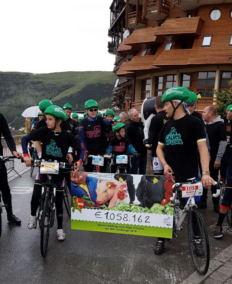 Vandaag 2 juni beklommen ze namelijk met 242 collega's uit de agrarische en aanverwante sectoren op één dag, onder de noemer ‘BIG Challenge’ aan Alpe d’ HuZes tot maar liefst zes maal de Alpe d’Huez. Maar liefst 10% van de totale opbrengst kwam dus van 242 boeren, dat op een totaal van 5000 deelnemers, Paul zelf heeft ruim boven de 8000 euro bij elkaar gefietst. Paul:” 1.058.162 euro! Ongelofelijk! Ik krijg niet snel kippenvel, maar toch echt wel op het moment dat wij als groep de laatste keer gezamenlijk de finish over gingen. Echt duizenden mensen zongen en klapten ons toe met ‘Boereuh! Boereuh!’ Geweldig, echt gaaf!