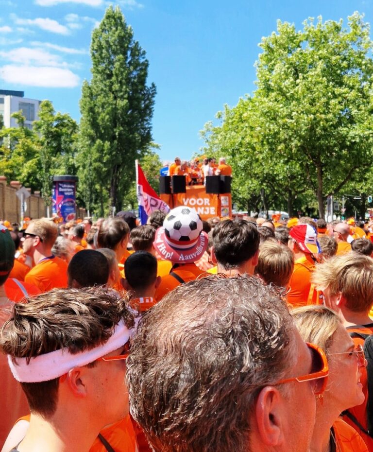 Kirsten Katier: Ja fantastisch mooi! Wat een geweldig leuke dag! Rond 11 uur kwamen we aan in Berlijn. Even snel de koffers brengen naar ons hotel en gelijk door naar de Oranje Fanzone. Deze ging om half 1 open.