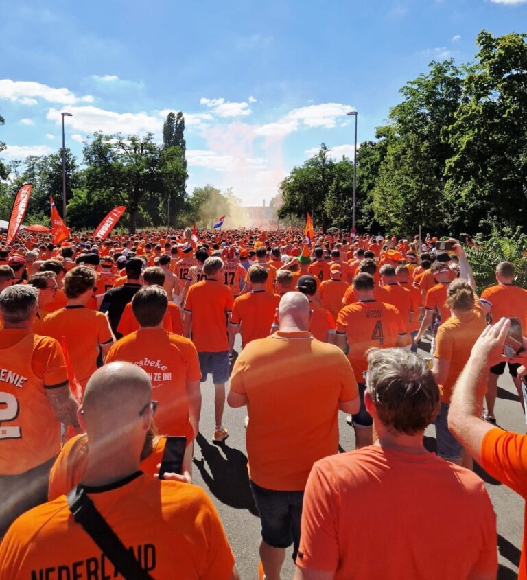 Samen met de vele Oranjefans zorgen ze voor prachtige beelden vanuit Berlijn en ze zetten de Duitse hoofdstad volledig op z’n kop. Ruim vier uur voor het begin van het duel hadden duizenden fans bezit genomen van de pleinen en straten. Kirsten Katier, hoe was het ondanks de wedstrijd?