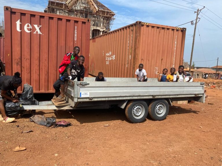 Samen met zijn contactpersoon Santigie; wiens oudste zoon zelfs Brian is genoemd zet hij nu concrete stappen om hulp beter en efficiënter te organiseren. Een belangrijke mijlpaal is de auto met aanhanger die afgelopen week in Sierra Leone is aangekomen. Dankzij de gulle bijdrage van Très Chic Bridal Wear en de bestickering door Gravutech Graveer & Reclame wordt deze wagen dé sleutel tot betere logistiek: kleding, schoolmeubels, knuffels en andere essentiële spullen komen nu op de juiste plekken terecht. Het onderstaande bericht is naar Brian Kuipers gestuurd: