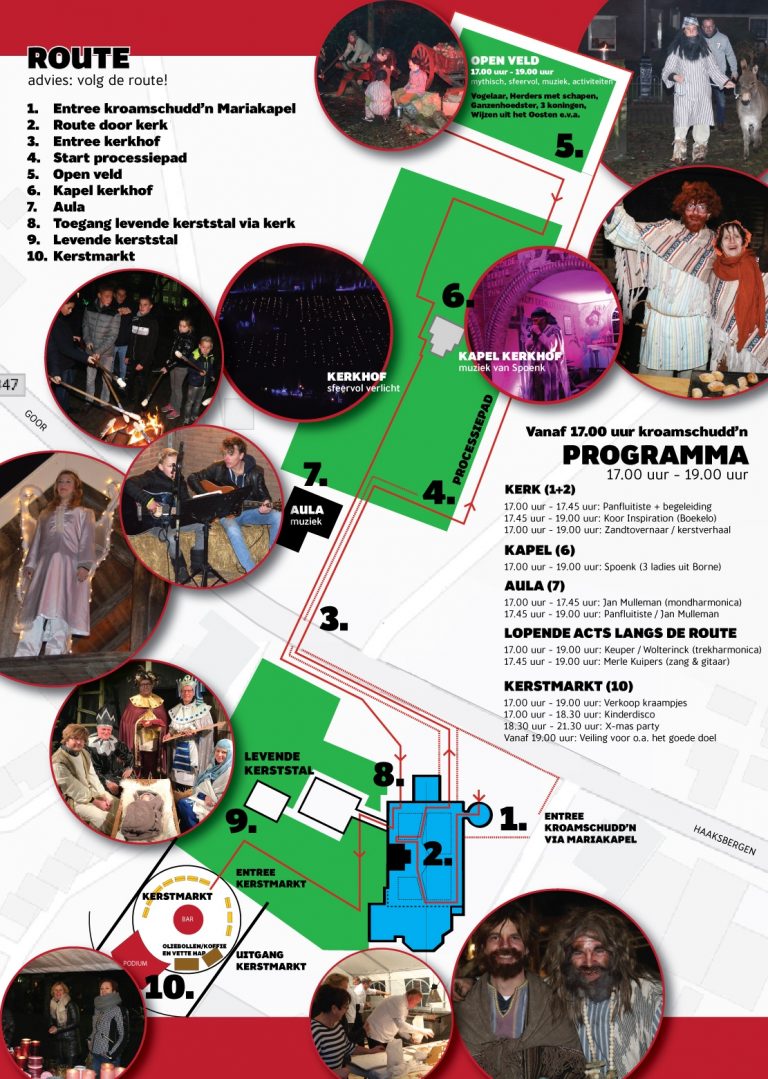 Morgen gaat het dan toch echt gebeuren. De 6e editie van kroamschudd'n in Hengevelde. De afgelopen jaren hebben we diverse malen de opzet van de wandeltocht gewijzigd. Zo ook dit jaar. Hierdoor is het niet altijd duidelijk waar het begin is van de route. Daarom laat de oragisatie o.a. via Wegdamnieuws weten dat de route dit jaar begint bij de entree van de Mariakapel. Van daaruit gaan we de kerk in. In de sfeervol verlichte kerk is muziek. De rest van de route zal via de looppaden vanzelfsprekend zijn. Tevens krijg je een flyer mee met daarop een plattegrond met route. (zie foto)