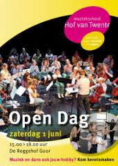 Op zaterdag 1 juni vond de jaarlijkse open dag van de Muziekschool Hof van Twente weer plaats in De Reggehof te Goor. Tussen 15.00 en 18.00 uur was iedereen van harte welkom om kennis te maken met musiceren en dansen en daar werd gretig gebruik van gemaakt. Daphne Blokhorst uit Hengevelde en Yaron Vehof uit Goor wonnen een blokfluit. De gitaar ging naar Merle Haverkate uit Goor. De hoofdprijs, 25% korting op het lesgeld voor één cursusjaar bij de muziekschool, is in de wacht gesleept door Jesse Wissink uit Markelo.