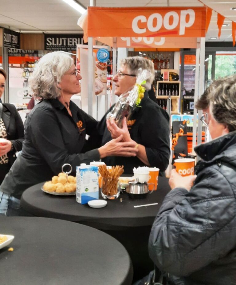 “Ze heeft enorm genoten van alle klanten die haar hebben verrast in de Coop. De vele opkomst hiervan zegt genoeg hoeveel mensen er blij mee zijn dat ze 15 jaar het vertrouwde gezicht was van kassa 1 in de Coop.