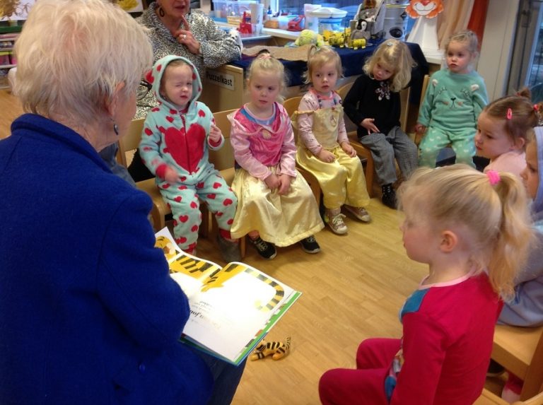 Er werd uiteraard volop voorgelezen uit het Prentenboek van het Jaar: Ssst! De tijger slaapt! Myranda ten Thije:”Bij ons werd er ook voorgelezen door Wies Wassenberg (voorheen logopediste in Hengevelde) en Ans Eshuis (voorheen leerkracht van de Petrusschool), waarvoor onze hartelijke dank!