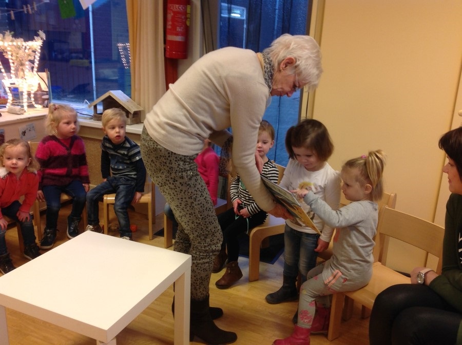 Behalve dat voorlezen heel gezellig is, leren de peuters tevens nieuwe woorden begrippen kennen.