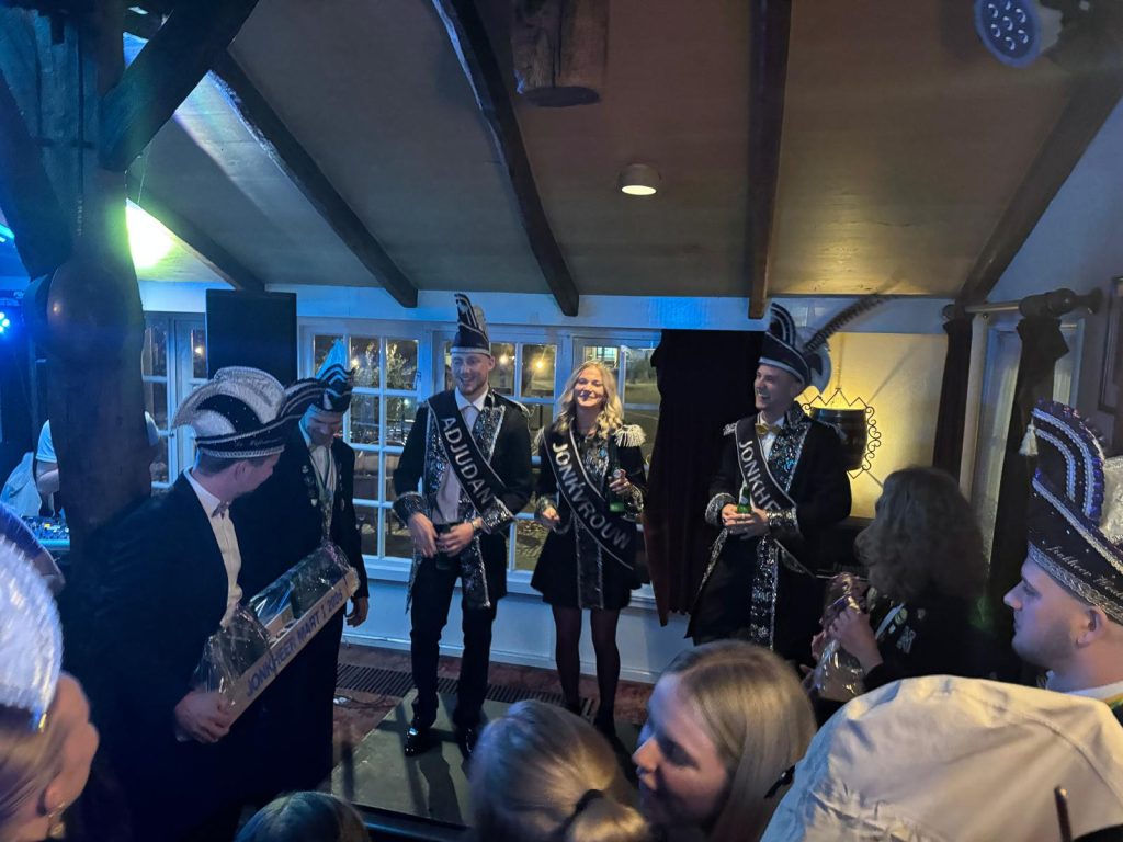 Het nieuwe ‘JoJo-paar’ van Carnavalsvereniging De Höftemennekes is bekend! Op vrijdagavond 24 oktober werd in het voorcafé van De Gebrande Waateren op ludieke wijze onthuld dat Jonkheer Mart Zendman, samen met Adjudant Jonkheer Lars Escher en Jonkvrouw Anouk Stegeman met haar Adjudante Auke Freriksen (Die nog in Suriname zit!) , het nieuwe ‘JoJo-koppel’ van 2026 vormen.