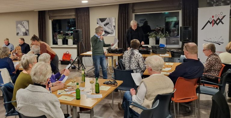 Vervolgens werd een Muziekbingo ingezet onder leiding van de basgitarist van MiXX George de Witte. Een ras-entertainer zo bleek! Zijn enthousiaste en creatieve maar ook humoristische stijl bracht de sfeer tot grote hoogte. “Wij hebben ook echt álles in huis ” was de conclusie van de leden.
