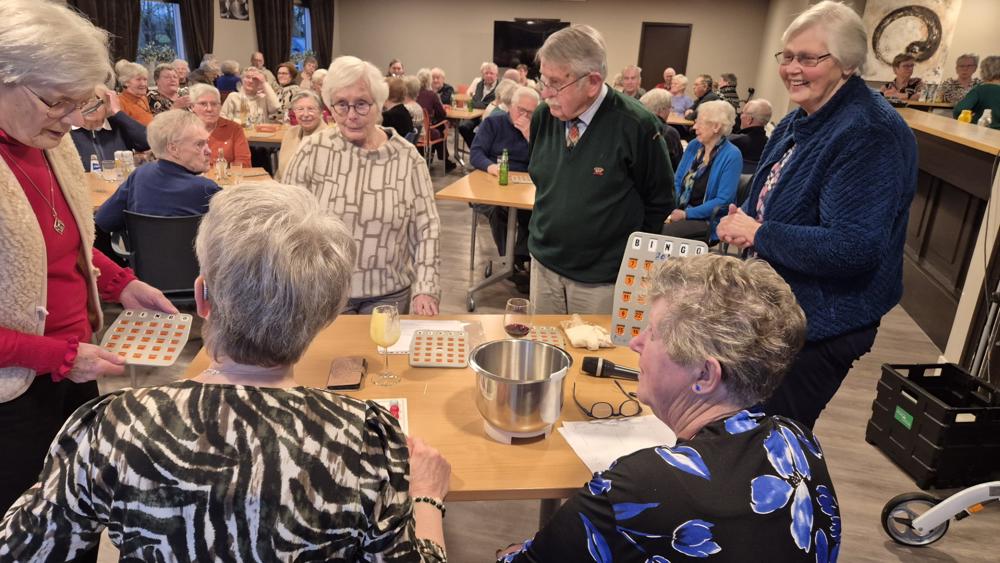 Na de koffie met cake was het tijd voor een gezellige bingo waarbij mooie prijsjes waren te winnen, verzorgt door de vrijwilligers die ook in grote getale aanwezig waren. Tussen de rondes door was er tijd om gezellig bij te praten en werden de gasten verrast met een hapje en een drankje. (zie foto’s).