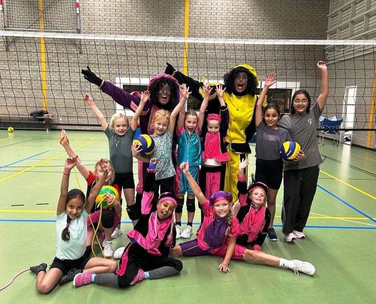 Gisteren stond de volleybaltraining ineens op z’n kop: Twee pieten maakten onverwachts hun opwachting! Onder luid gezang en stralende gezichten werden ze feestelijk onthaald. De meiden lieten trots zien welke oefeningen ze tijdens de training doen, en natuurlijk konden de pieten niet achterblijven.