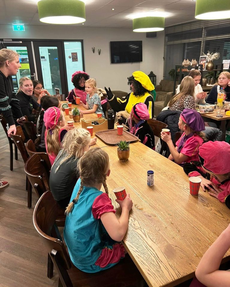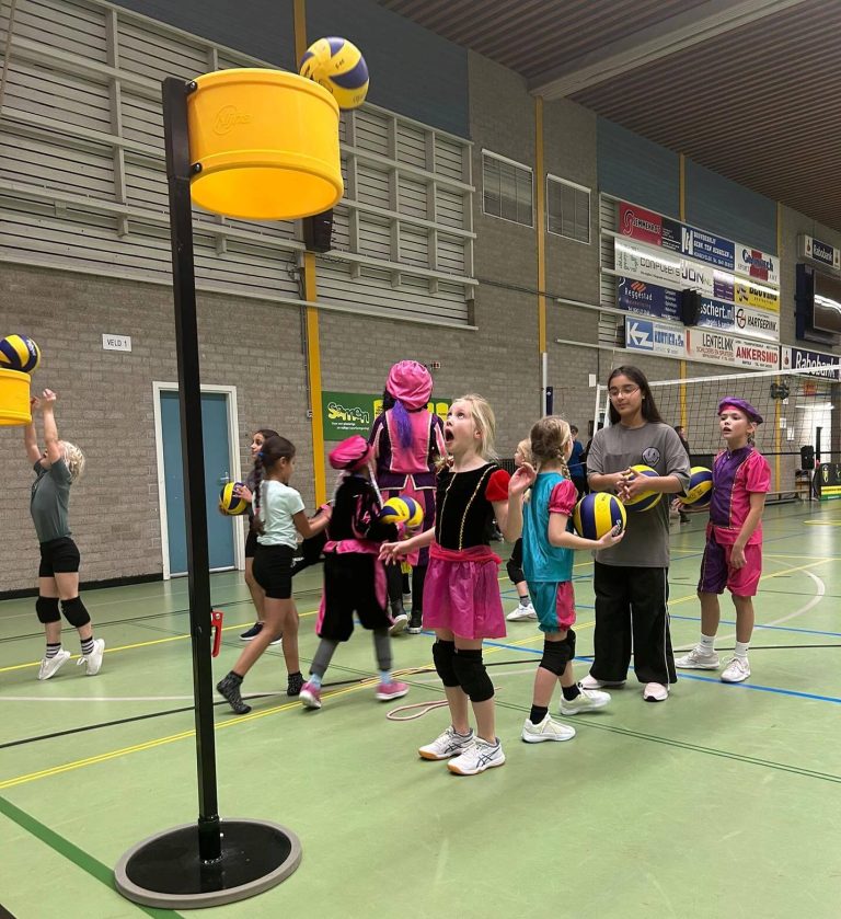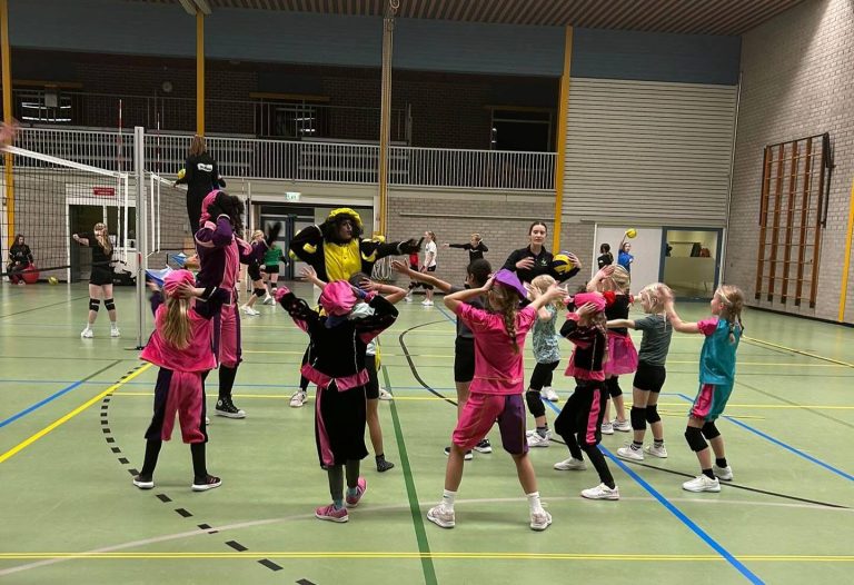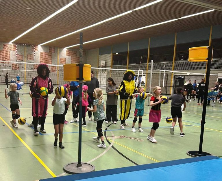 Gisteren stond de volleybaltraining ineens op z’n kop: Twee pieten maakten onverwachts hun opwachting! Onder luid gezang en stralende gezichten werden ze feestelijk onthaald. De meiden lieten trots zien welke oefeningen ze tijdens de training doen, en natuurlijk konden de pieten niet achterblijven.