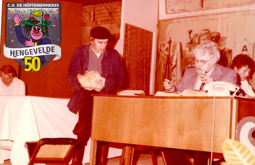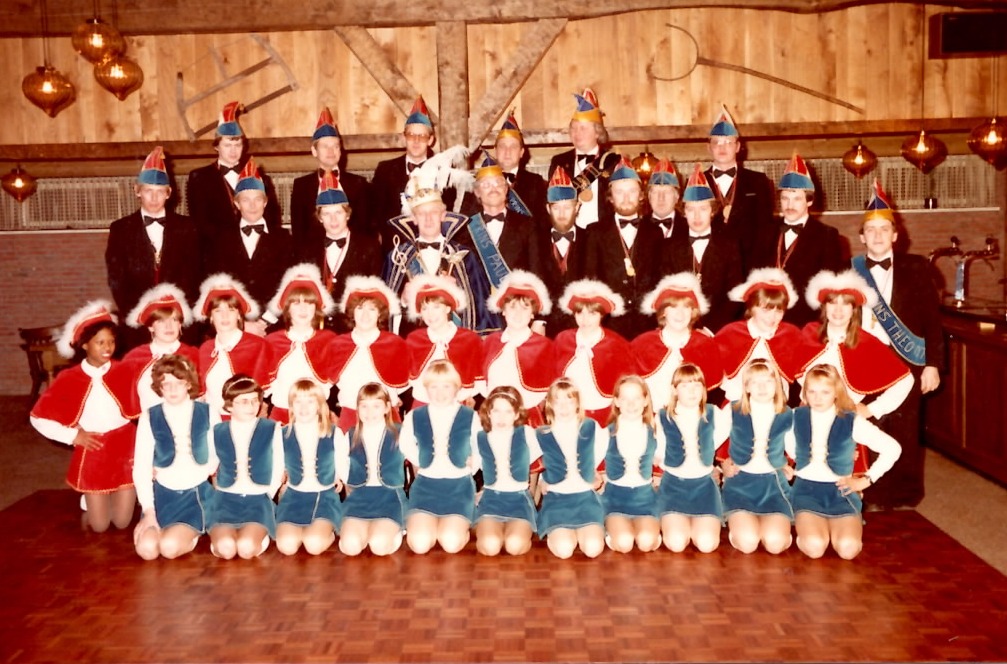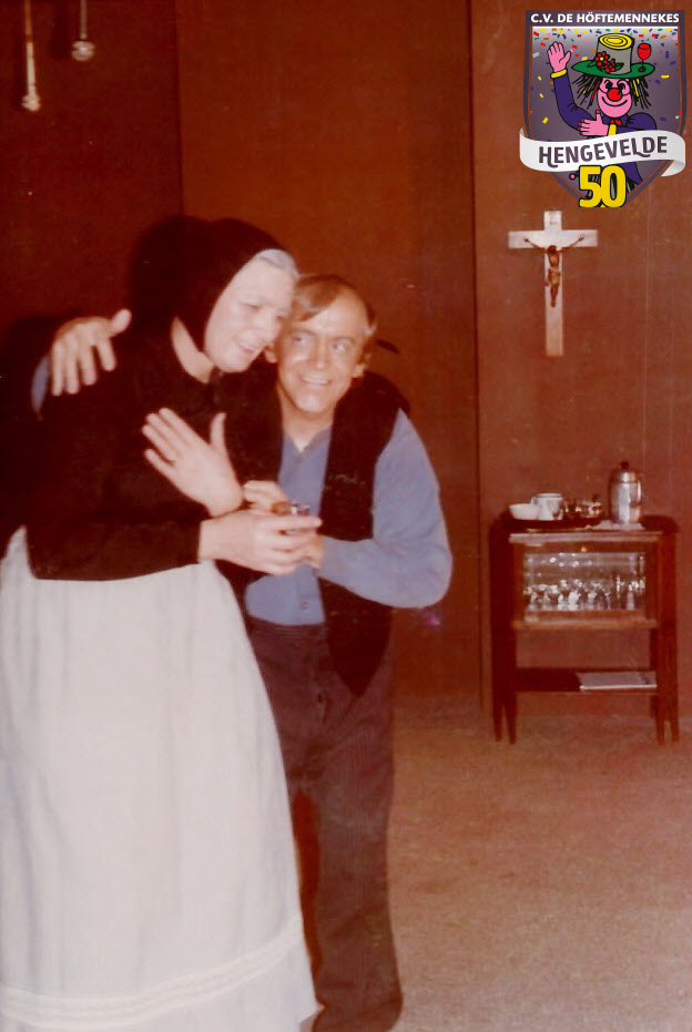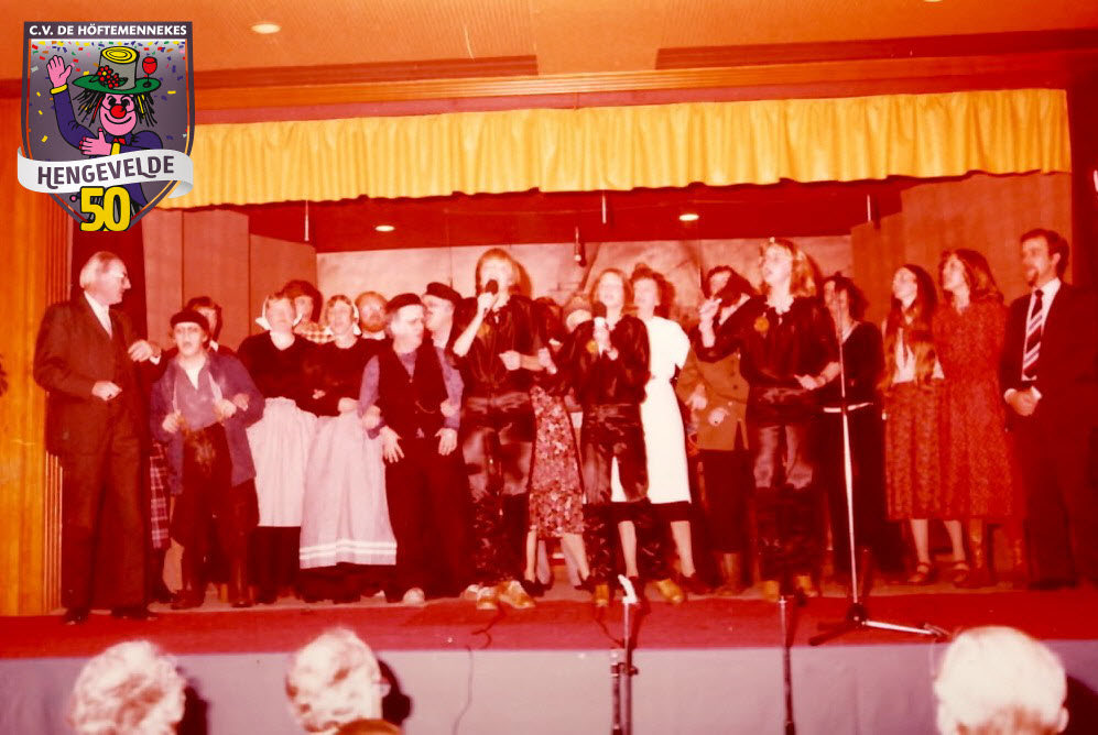 De Höftemennekes: Dat is eigenlijk voortgekomen uit de WEBO, bij Veehof. Onder andere Harry Doeschot en Gijs en Jan Eijsink zaten daarbij. Zij hadden ook een carnavalsvereniging en die wilden er mee stoppen. Ik heb gezegd, doe mij de kleren maar! En zo zijn we begonnen. We hebben ook gelijk de prinswisseling naar de revue overgezet. Ook de kinder-en bejaarden carnaval is toen opgezet evenals het ziekenbezoek. Varenbrink was de residentie, de oude prinsenfoto’s als getuige”.