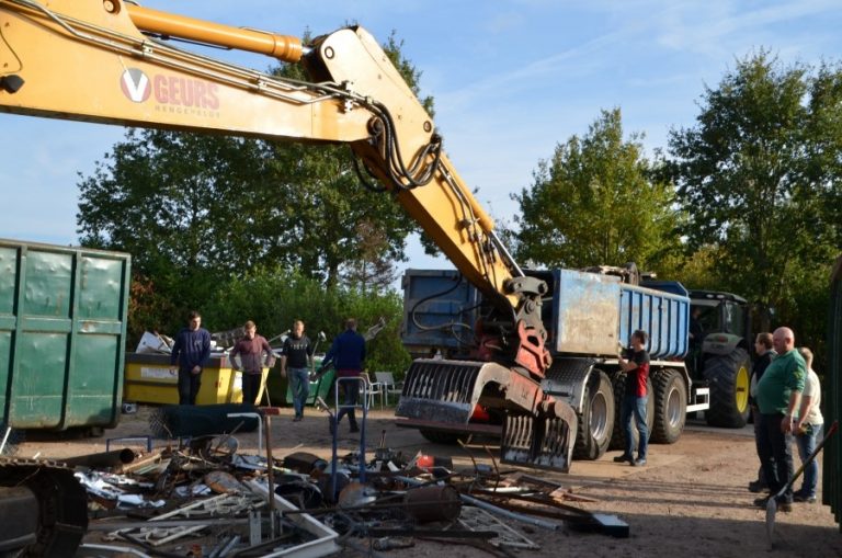 Gisteren was het dan weer zover; Onder leiding van ijzerkoning Bert Mensink met zeven tractoren, twee auto’s met aanhanger en 26 vrijwilligers de hele dag in de weer voor de club. Woordvoerder Thijs Aarnink: ”We weten nog niet veel, de eerste container was 9500 kilo, de tweede iets minder. De opbrengst is minder qua kilo’s maar daartegenover is de prijs aanzienlijk beter dan afgelopen jaar. De opbrengst van de overige metalen is ongeveer hetzelfde. Zoals ik er op dit moment op terugkijk is wel een van de mindere jaren, maar wel mooi verlopen zonder schade en op tijd af, zelfs voor 17:00 uur. Alles is nu weg en heb opkoper Teerds uit Diepenheim niet weer gesproken, dus we horen denk ik volgende week zaterdag de rest van de cijfers.”