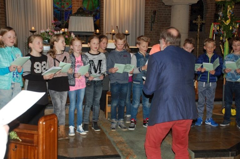 Zaterdagavond 19 maart om 18.30 uur was de palmpasenviering in Hengevelde. Ondanks de onduidelijkheid over de datum in een aantal media, waren er gelukkig veel mensen en vooral ook kinderen in de kerk! Het was een viering, waarbij groep 5 van de Petrusschool centraal stond, samen met leerkracht Hennie Leliefeld werd er goed gezongen. Aan het eind van de viering kwamen de paaskip en paashaas samen met enkele leden van Amuzant de kerk binnen.