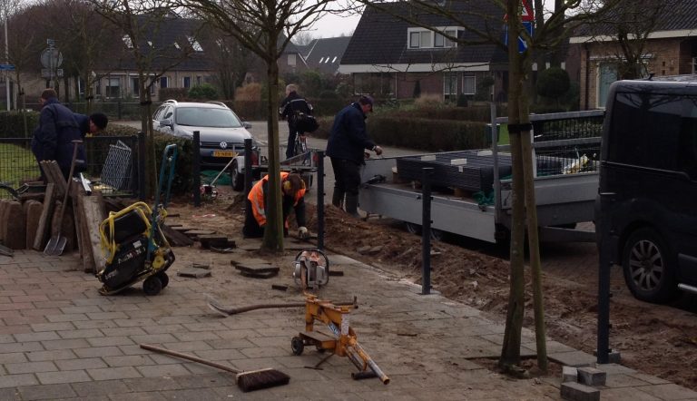 De eerste activiteiten omtrent het opknappen van het schoolplein zijn afgelopen vrijdag gestart. Na goed overleg te hebben gehad met de aanwonenden, zijn vrijdag eerst de oude heg en het ingegroeide gaas verwijderd, waarna de palen voor het eerste deel van het nieuwe hek zijn geplaatst.
