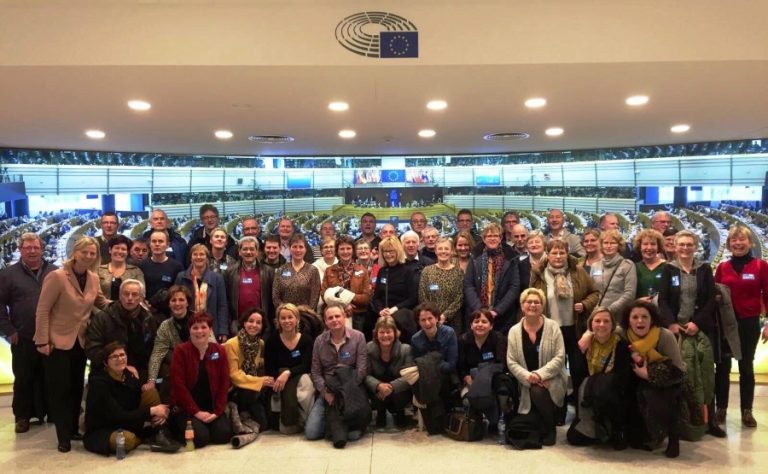 “Dit is een van de weinig groepen die een echte vergadering en stemming in de grote zaal meemaakten, dit is maar eens per 2-3 maanden in Brussel, wel elke maand in Straatsburg. Ze kregen koffie (ze waren een uur te vroeg in Brussel), een presentatie over de EU enzovoort, vervolgens een warme lunch op kosten van Annie en daarna nog rondleiding en een vraag-antwoord rondje. En na 16.00 uur gingen ze met de bus nog Brussel in om 'een pintje te vatten'.
