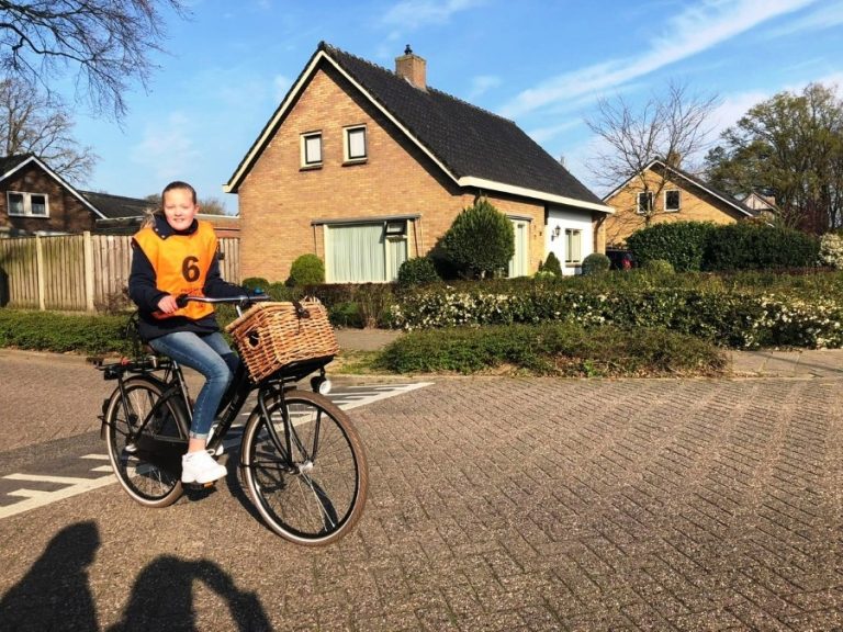 ’s Morgens kwamen de kinderen enthousiast binnen. Ze hadden er zin in. Na een kort overleg gingen de ouders naar hun posten op de route. Superfijn dat we zoveel hulp hadden! Eén voor één vertrokken de kinderen. Oranje hesje met je nummer aan en gaan. Onderweg werden ze met allerlei verkeerssituaties geconfronteerd, zoals rotondes, kruispunten, links- en rechts afslaan.