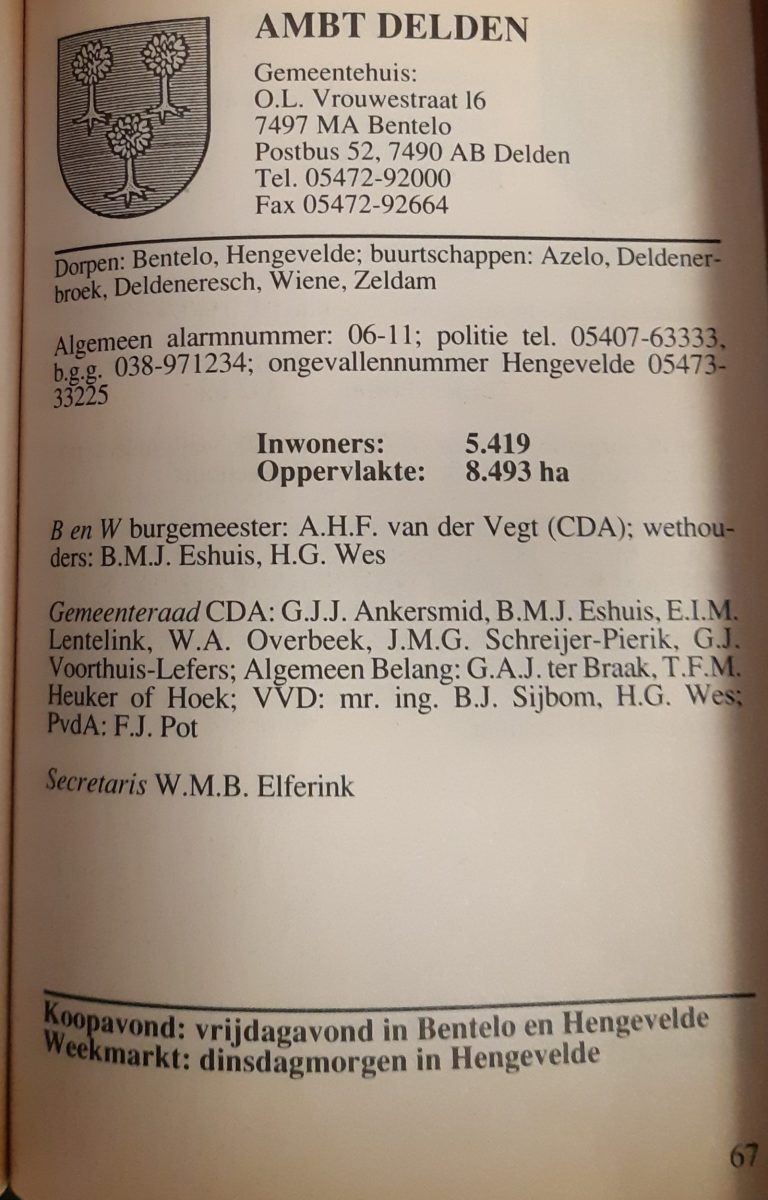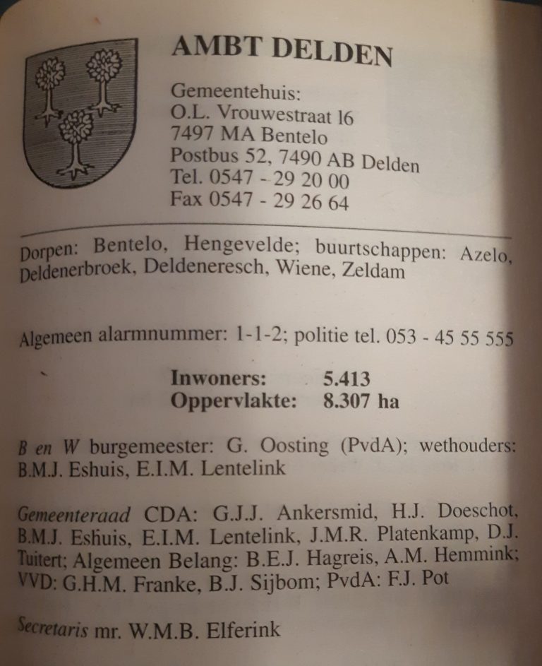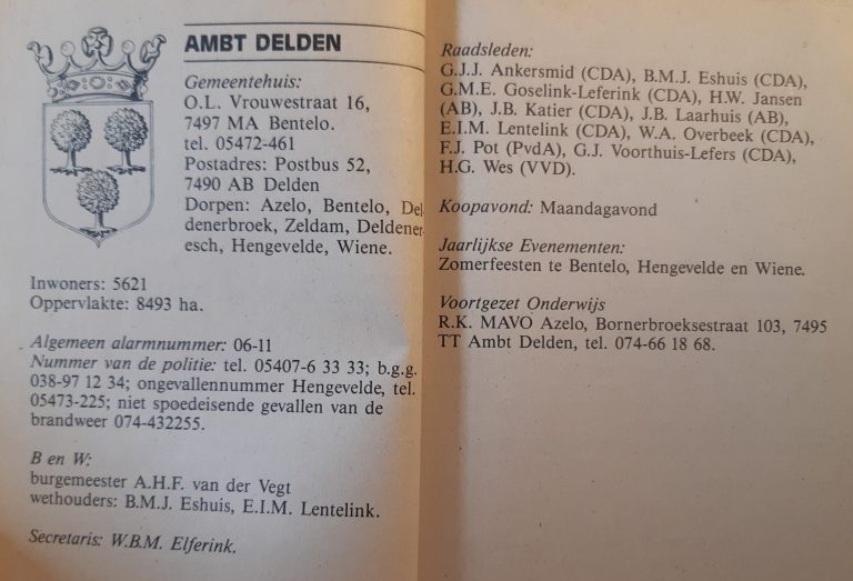 ps. Dit was het laatste artikel in een serie van vier over de ruim veertig jaren dat Ambt-Delden een eigen burgemeester had. Hiervoor verscheen op Wegdam Nieuws op 9 augustus 2021 een interview met Ans Buijvoets, de dochter van wijlen burgemeester Jan Buijvoets, en met Bep van der Vegt, de weduwe van oud-burgemeester Bert van der Vegt.