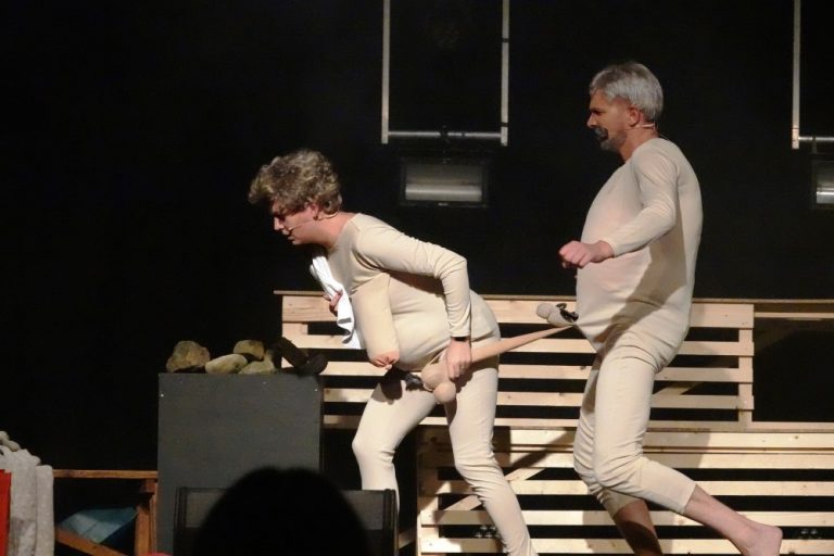 Daar was voor velen het hoogtepunt van de avond wat dan ook tot veel hilariteit geeft geleid: Hoe vergaat het oudere mensen in de sauna? Vele ongemakkelijke situaties waarbij de gene steeds meer op een zijspoor kwam te liggen.