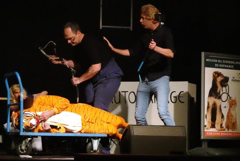 De traditie is weer in ere gehouden, ieder jaar is er een bedrijf aan de beurt, deze keer Autogaragebedrijf Kleinsman, met Theo en Joke in de hoofdrol. “Kom naar Theo’s Auto Paleis; die de combinatie vormde met de dieren kliniek wat vele hilarische situaties opleverde en zo werd het een samenwerking met de buurvrouwen: Theo’s Dieren paleis!