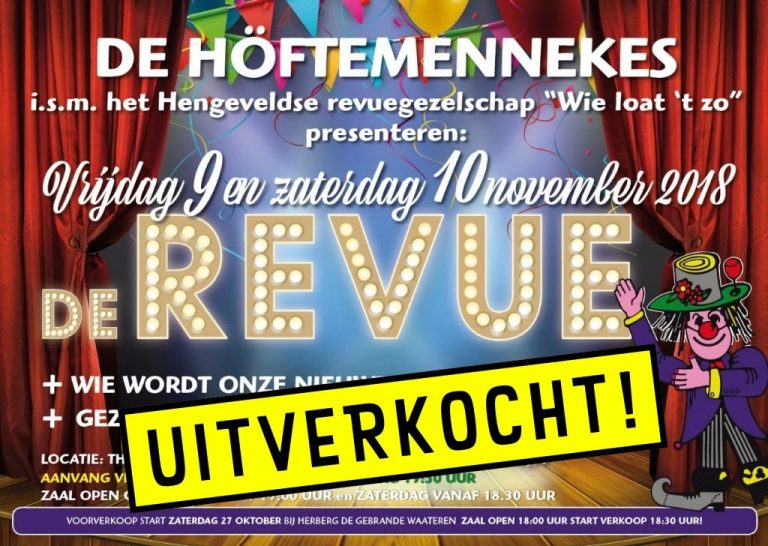 Nog drie weken en dan is het al weer tijd voor de jaarlijkse Revue en Showavonden van CV de Höftemennekes. Het Revuegezelschap is al weken aan het oefenen en het belooft weer een mooie show te worden! Uiteraard zal op zaterdagavond ook weer de Prinswisseling plaatsvinden. Wie wordt de nieuwe Prins carnaval van CV Höftemennekes? De poll verschijnt binnenkort weer op Wegdamnieuws!