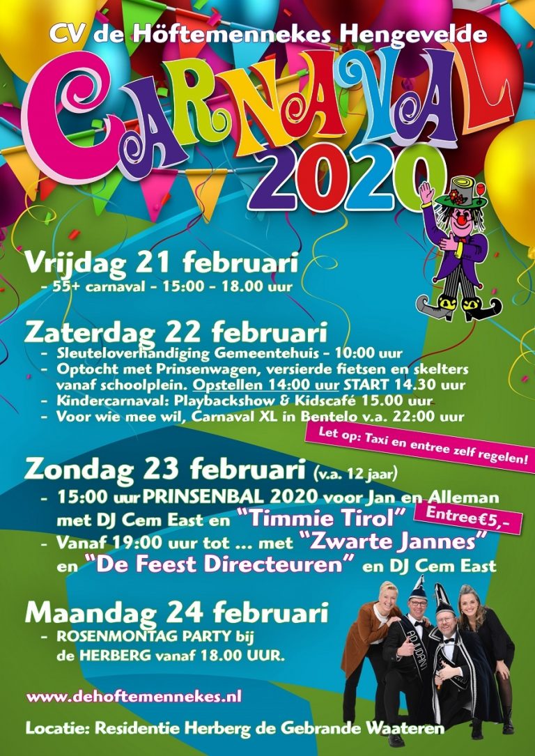 21:30 uur vertrek leden CV de Höftemennekes richting Bentelo voor Hofborrel voorafgaand aan Carnaval XL. 22:00 uur Voor iedereen die wil met z’n allen de Carnaval XL tent in met Prins Robert I (Ten Thije) en ook Prins Mark I en de Prins van Beckum (? wordt 24 januari bekend gemaakt) )zijn met hun grote gevolg van de partij. Taxi + entree combikaart = € 19,- / entree vrij voor leden! Voor de thuisblijvers is onze Residentie geopend voor “een eigen feestje”. Maar ja, dan mis je uiteraard wel een mooi feest met elkaar!