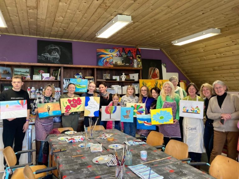 Caritas organiseerde zaterdag een schilderworkshop voor Oekraïense vluchtelingen. Deze workshop werd gegeven door Tineke Goorhuis in Atelier de Schöppe in Hengevelde. Alle deelnemers werden verwelkomd in het atelier en kregen, uiteraard met hulp van tolk Natalya ten Heggeler, een korte introductie over de schildertechnieken die ze zouden gaan gebruiken.