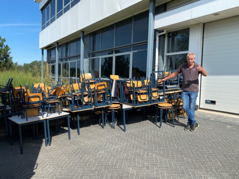 Het schoolmeubilair is, met onder andere conciërge Andre Leferink in eerste instantie gelost in Holten bij de opslag van Stichting ZGT-Overzee.