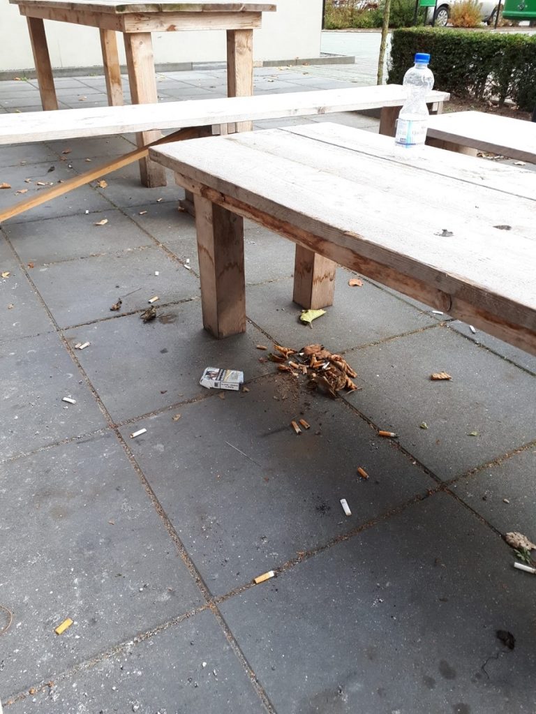 "Wat te zien is op de volgende foto's treffen we regelmatig aan bij ons! kulturhus de Marke. Er staan prullenbakken maak hier aub gebruik van.
