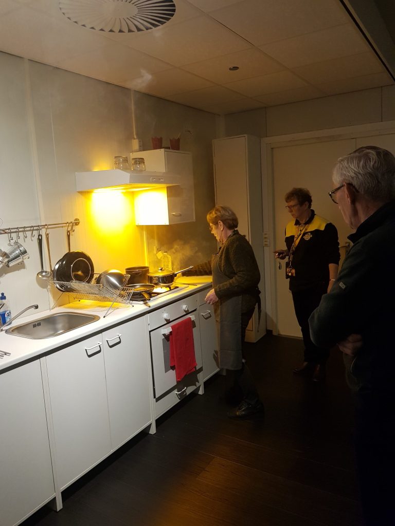 We leerden onder meer hoe je apparatuur veilig oplaadt, wat je moet doen bij een vlam in de pan en hoe je met kracht- en evenwichtsoefeningen valpartijen kunt voorkomen.
