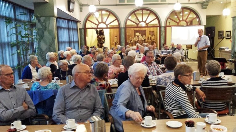 Zo’n 100 senioren waren woensdagavond naar de Hebo kantine gekomen om de eerste seizoen avond bij te wonen. En ze werden niet teleurgesteld. In zijn welkomstwoord meldde de voorzitter dat er weer een evenwichtig programma is samengesteld met voor elk wat wils, voor jongere en oudere senioren. Ook werd het feit dat we in de huidige tijd niet langer het digitale contact kunnen ontlopen, benadrukt. Niet elke senior is er al volop mee bezig. Mailen, website en appjes zijn begrippen die schoorvoetend gehanteerd worden. Er is echter geen keus. Willen we mee blijven doen en op de hoogte blijven van de dingen om ons heen, dan is een bepaalde basisvaardigheid op de computer of iPad noodzakelijk. Zeker nu ook De Höfte gaat verdwijnen.