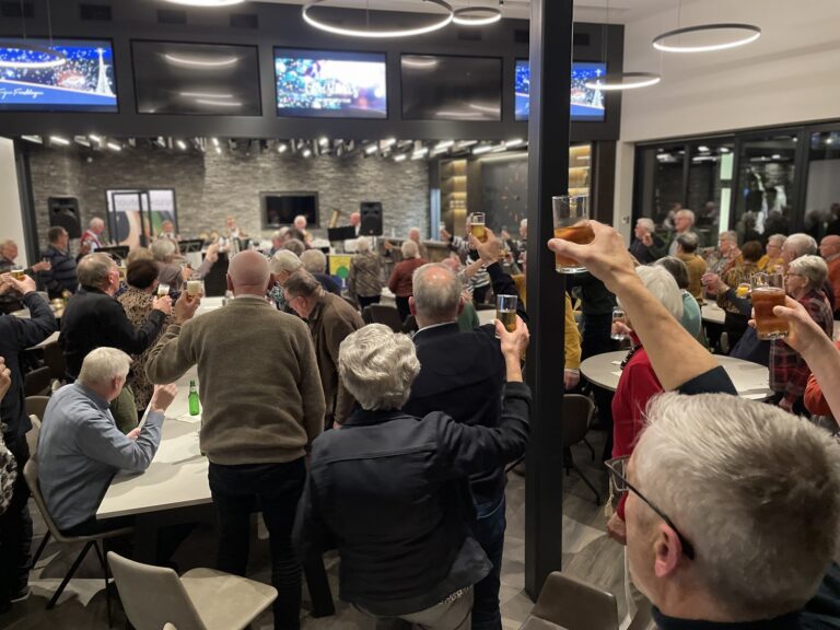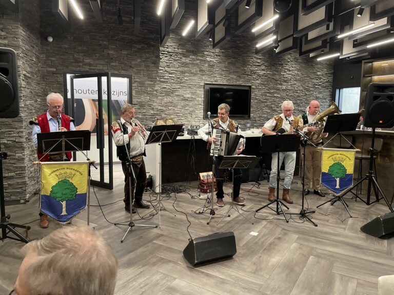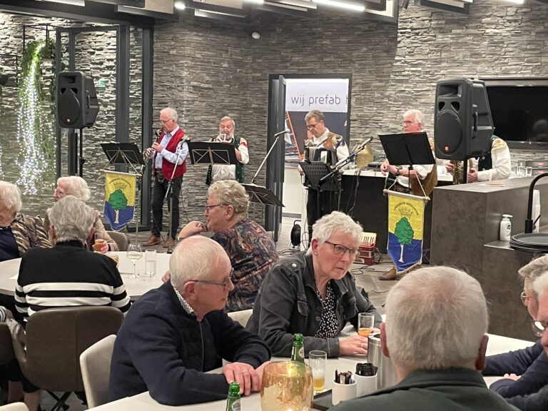 De avond kreeg een vervolg met de band ‘De Lindenbaum Musikanten’ die heerlijke Oberkraïner muziek liet horen, waarbij alle aanwezigen onderwijl gewoon in gesprek konden blijven met hun tafelgenoten. Het werd een gezellige avond waar ieder het oude en het nieuwe jaar ruimschoots aan de orde kon stellen. Een samenzijn zoals het bedoeld was: Gezellig en ongedwongen. En natuurlijk ging het glas op het nieuwe jaar omhoog voor het ‘Ein prosit’.
