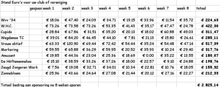 Daarom nogmaals, steun uw club of vereniging om het jaar afsluiten met het incasseren van een vette cheque. Hieronder de tussenstand en de vele creaties van de verenigingen, deze hangen in de Spar