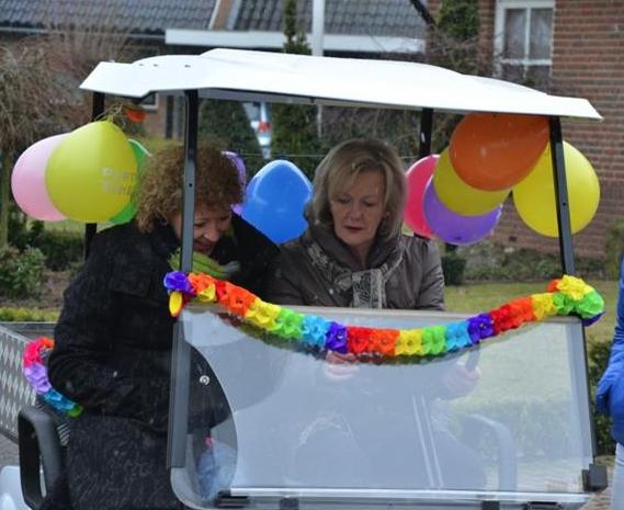 Na weken van voorbereiding was het vrijdag zo ver. De kinderen die het laatst op de kinderopvang van Rieky en Carla zaten hadden een leuke verrassing voor de dames georganiseerd. Totaal overdonderd werden ze met speciaal transport naar Assink vervoerd waar een passend afscheid in de vorm van een kinderdisco plaatsvond. Onder het genot van een hapje, een drankje en een lied werden ze bedankt voor hun goede zorgen. Rieky, hoe was het?”Geweldig, werkelijk haha! De hele week was het al bloemetje dit en plantje dat maar dit sloeg werkelijk alles! Ik stond op het punt Hans weg te brengen naar de therapie en daar stond plotseling een ware optocht voor de deur. Moest ik gelijk mee in mijn oude plunje haha!”De ruimte van de voormalige kinderopvang is nu definitief gesloten en wordt verbouwd tot woonruimte.