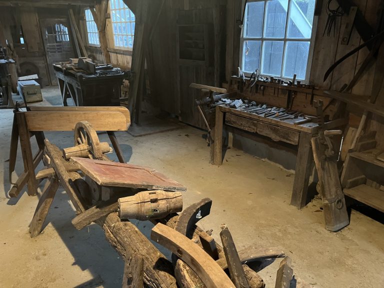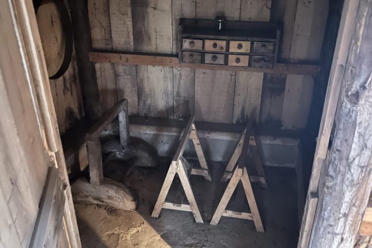 Bennie leidt iedereen met veel enthousiasme rondt toont bezoekers naast alle gereedschappen graag een bijzondere ruimte in de timmerwerkplaats, die vroeger streng verboden terrein was voor kinderen. In dit kamertje werden materialen opgeslagen voor het maken van doodskisten, waaronder zilverkleurige nagels met een kruisje erop. Deze ruimte ademt de geschiedenis en biedt een unieke inkijk in een minder bekende kant van het timmermansvak.