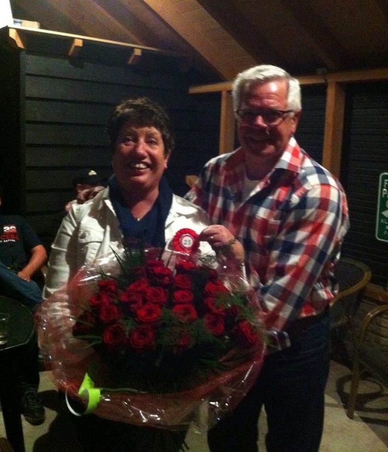 Als je de basisschool verlaten had, was het Hengeveldse Jeugdjongeren werk de manier om nog contact te houden met je oud klasgenoten. Dit ging de afgelopen 25 jaar via Trees Blanken, door de jaren heen bij alle leeftijden bekend. Afgelopen editie van de Hengevedse Revue werd ze nog met haar specialiteit, de sexuele voorlichting geïmiteerd, maar na gisterenavond zal een ander die handschoen op moeten pakken. “Trees was bij de oprichting van Jeugd- en Jongerenwerk Hengevelde in 1989 en heeft de 25 jaar vol gemaakt. Klasse hoor Trees!” klonk er gisterenavond op erve Veelers. Tevens heeft Helen Storteler er na 10 jaar een punt achter gezet, waarvan zij de laatste jaren als penningmeester heeft gefungeerd. Dames, beide bedankt voor jullie inzet!
