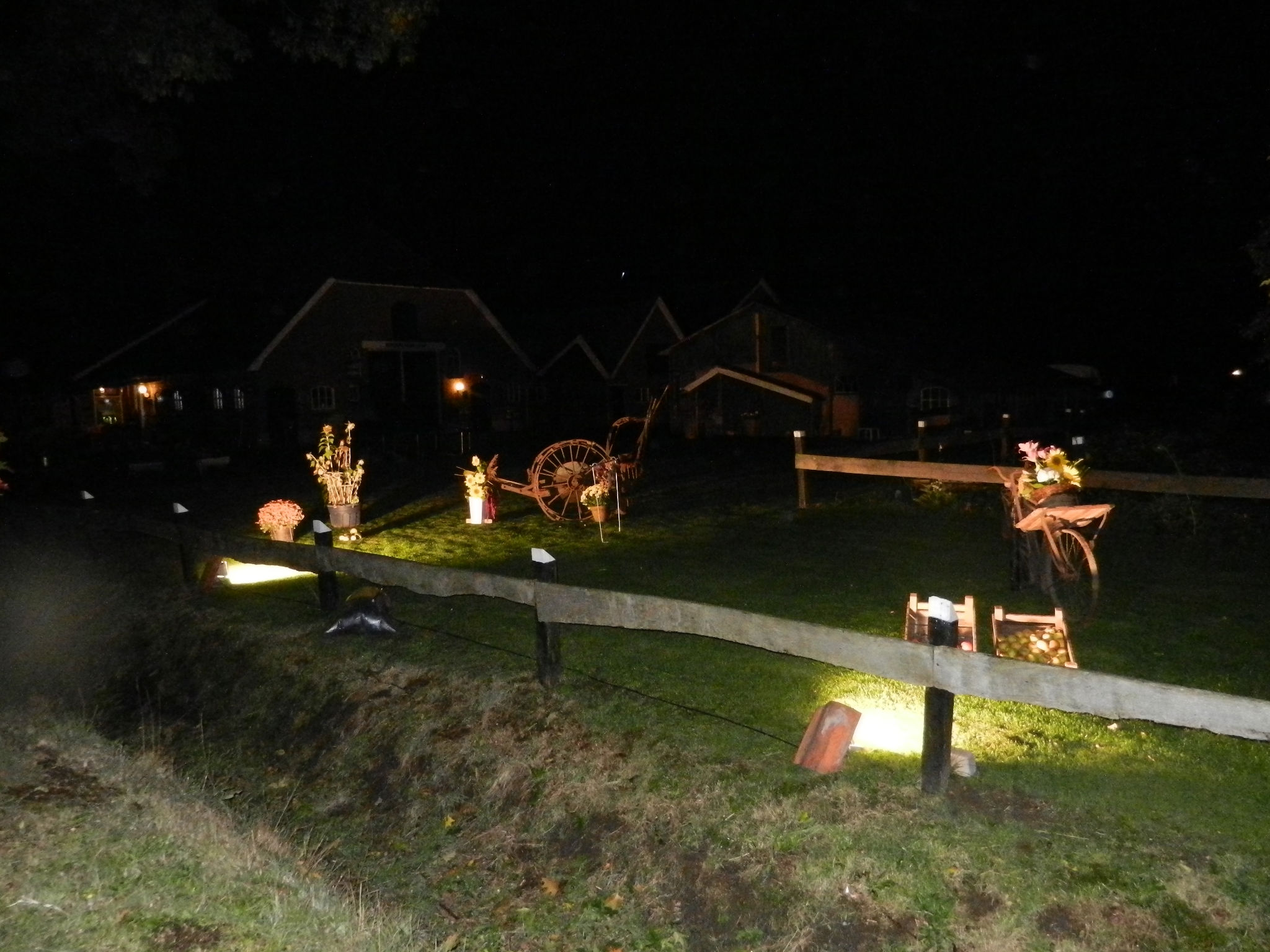 Ondanks het druilerige weer van vrijdagmiddag is de verlichte avondwandeling een groot succes geworden. Dankzij de inzet van circa 80 vrijwilligers is alles vlekkeloos verlopen. Zij hebben er onder andere voor gezorgd dat er elke tien meter een paaltje in de grond zat, waaraan een potje met een waxinelichtje hing.
